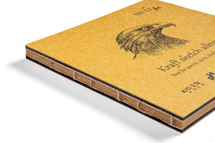 Layflat album Kraft "SMLT ART" Se 100% recyklovaným papírem Kraft. Povrch je vhodný pro všechny druhy náčrtů a poznámek, ale nejlépe pro tužky, pera, křídy, uhel. Vyrobeno speciálně způsobem "naplocho" pro jednostránkové výkresy nebo panoramatické pohledy. S otevřenou knižní vazbou. Přední a zadní obálka je z extra tvrdého kartonu v přírodní barvě. Vnitřní papír neobsahuje kyseliny, pH má neutrální. Blok má certifikaci FSC.